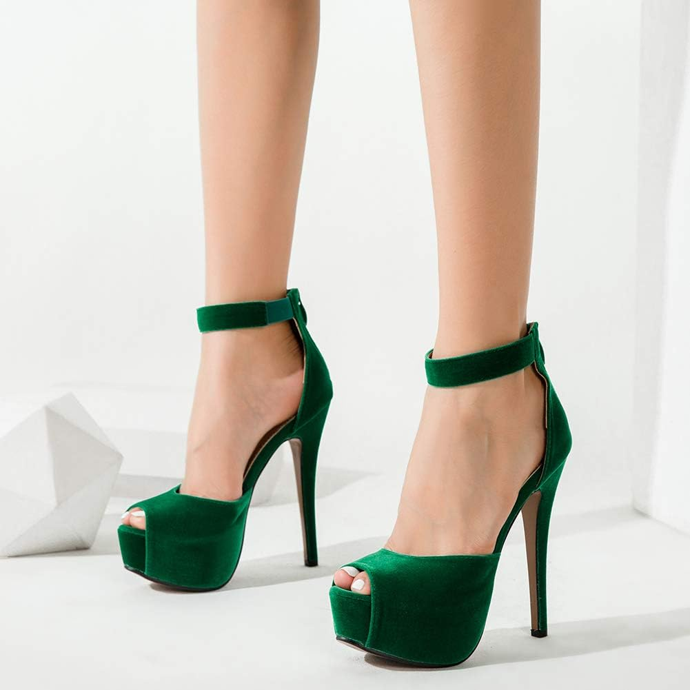 LIURUIJIA Women’S Ankle Strap High Heels Platform Stiletto Heels for Women Wedding Bridal Dress Peep Toe Pump Heeled Sandalsgreen-43