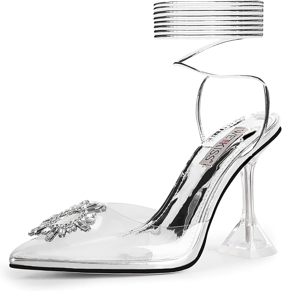 Wetkiss Women’S Clear Heels Shoes, Crystal Rhinestones Slingback Wedding Shoes Pointed Toe High Heel Sandals