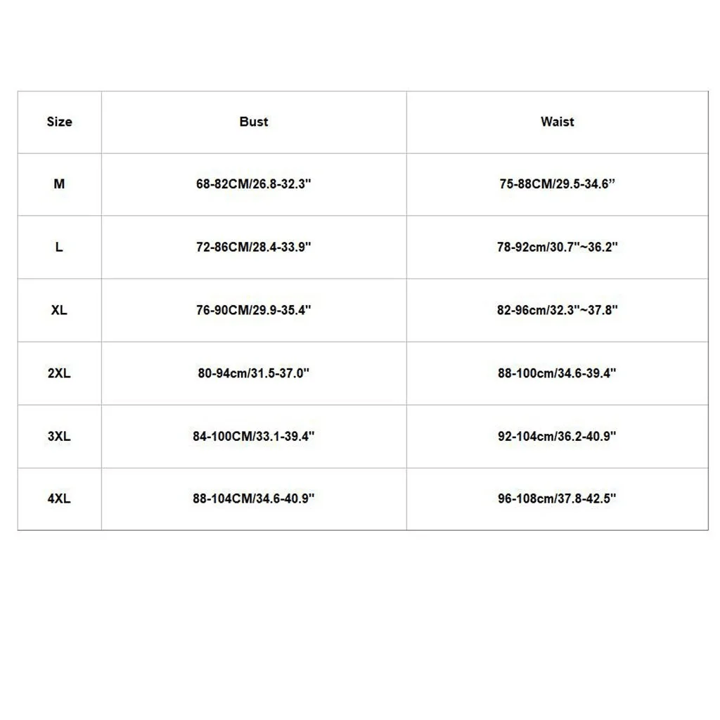 | Size:4XL | Bust:88-104CM/34.6-40.9″ | Waist:96-108cm/37.8-42.5″ |